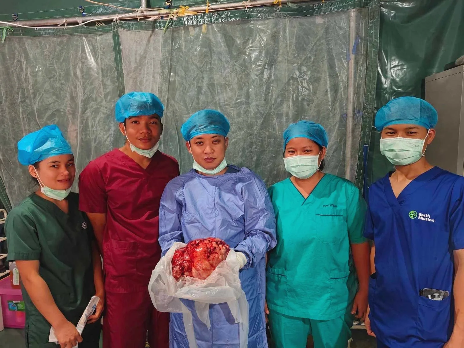 Dr. Judson gave her anesthesia, and Dr. Augustine and the team opened the abdomen to look at the mass. The 11-pound mass was removed successfully and by the grace of God, the operation went well.