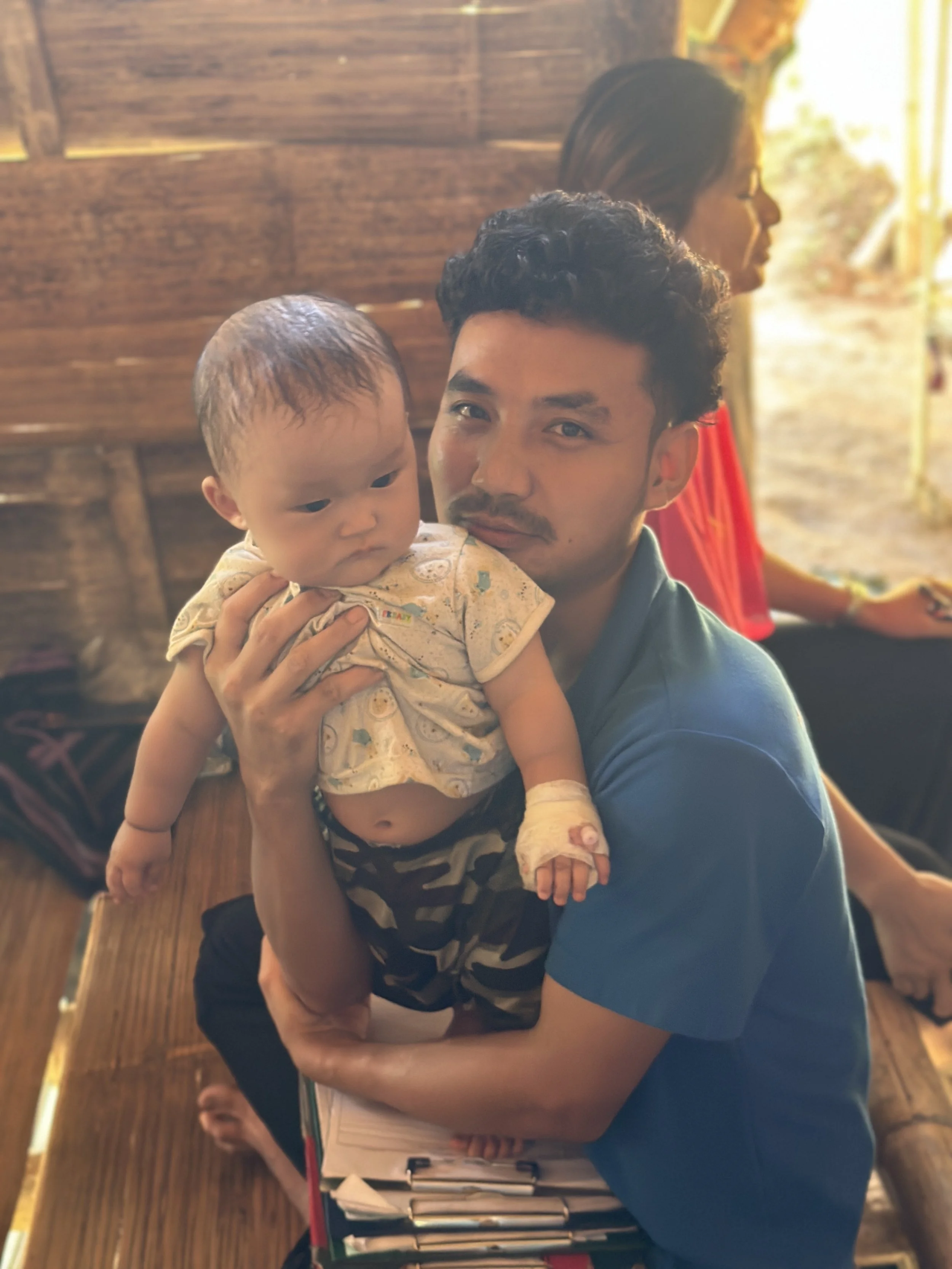 Eight months later, the baby came to the clinic with a common cold. We took a picture of the baby with Ywa Hay Blut, both smiling and healthy. Two days later, the baby went home, fully recovered from the cold.