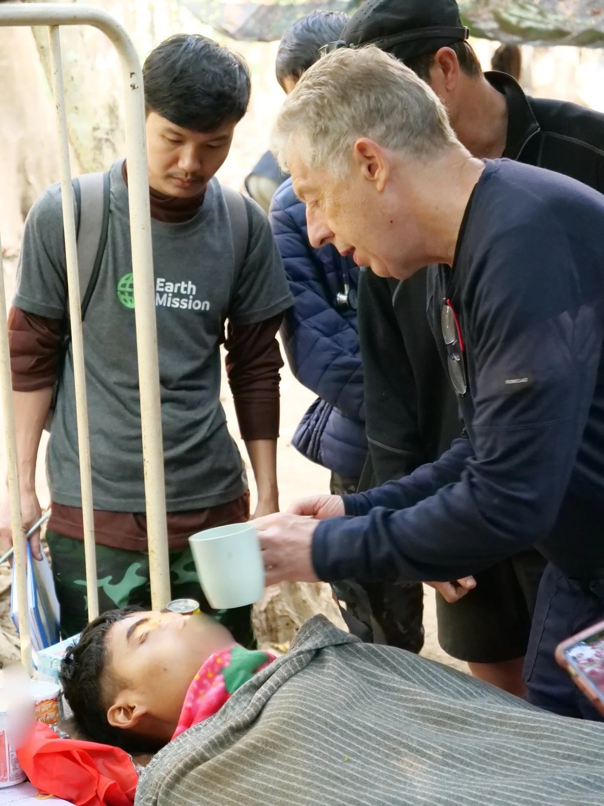 Four Karen men carry a stretcher quickly down the hill into our triage area, a tarp spread on the ground. The patient's face is marred with dirt and a thousand-yard stare. I move through the ABCs.